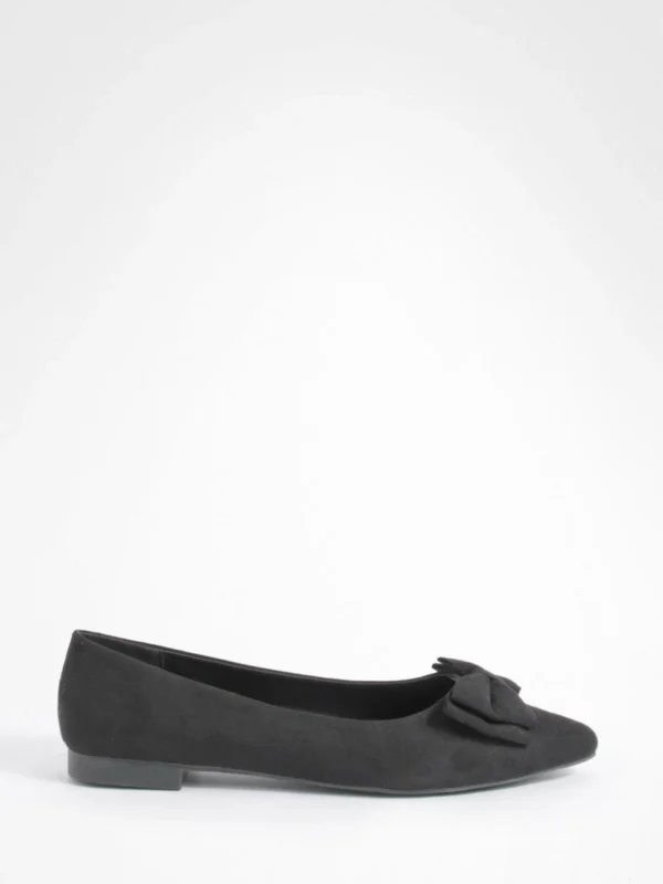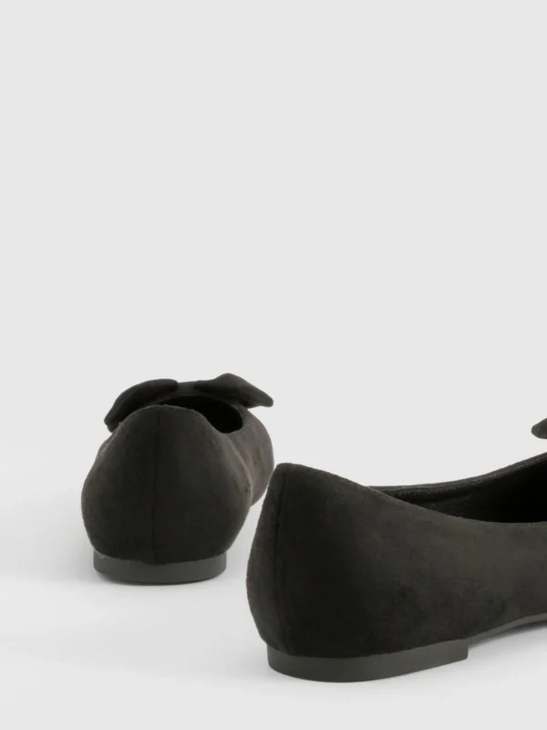 BOOHOO Wide Fit Faux Suede Bow Detail Pointed Flats
