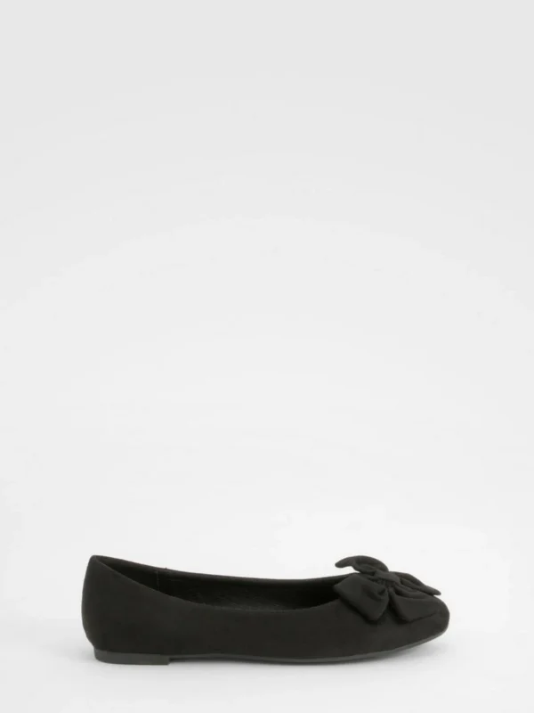 BOOHOO Wide Fit Faux Suede Bow Detail Ballet