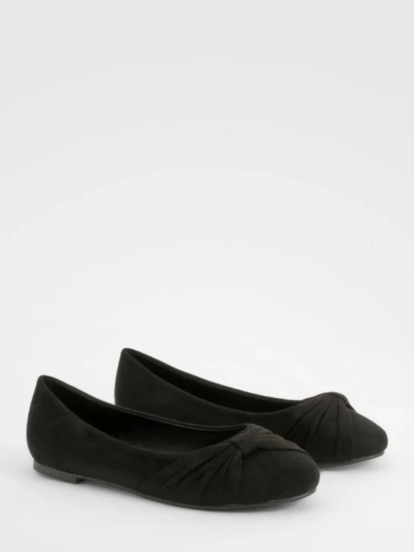 BOOHOO Wide Fit Faux Suede Twist Detail Ballet Flats