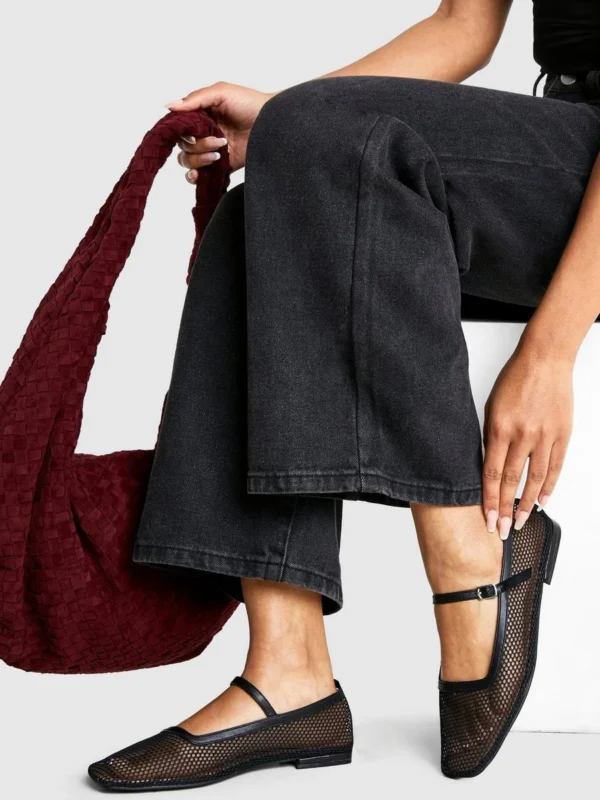 BOOHOO Wide Fit Mesh Strap Detail Ballet Flats