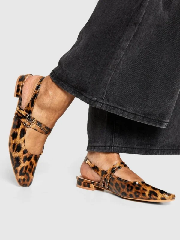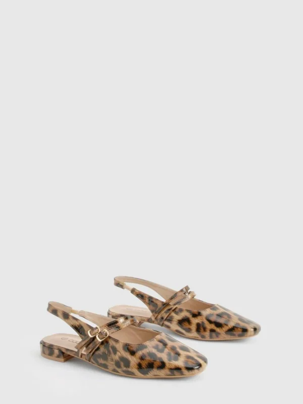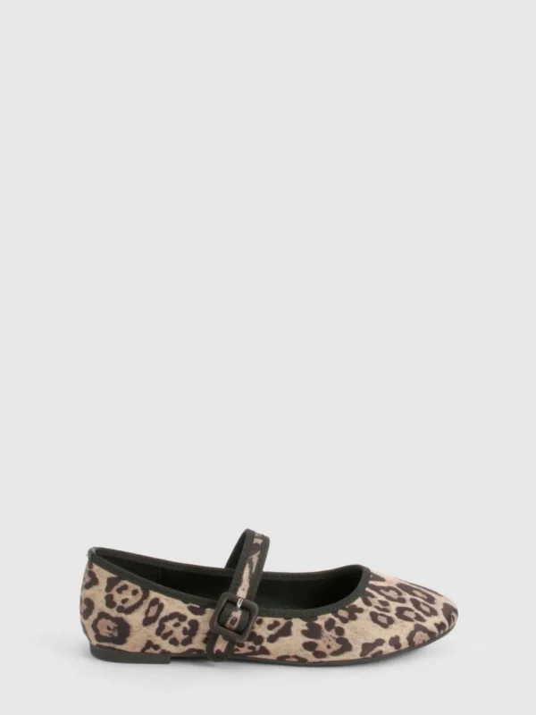 BOOHOO Wide Fit Leopard Patent Double Strap Mary Jane Ballets