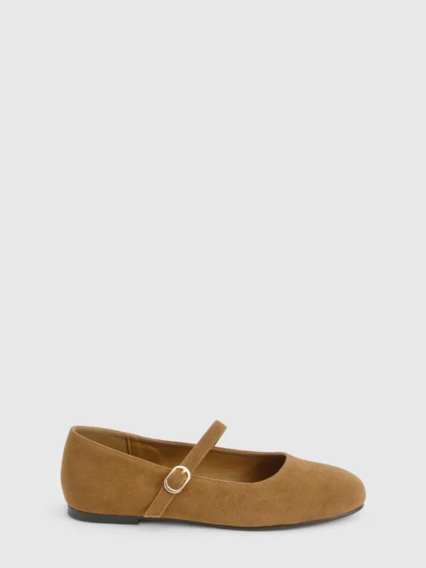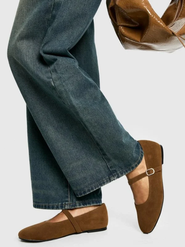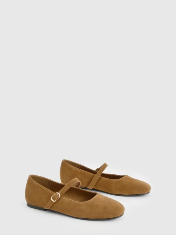 BOOHOO Wide Fit Faux Suede Mary Jane Ballet Flats