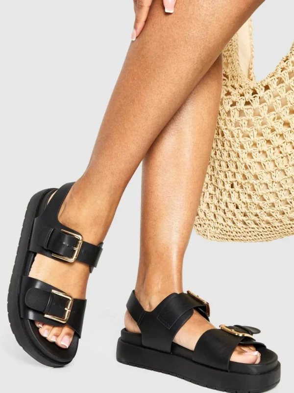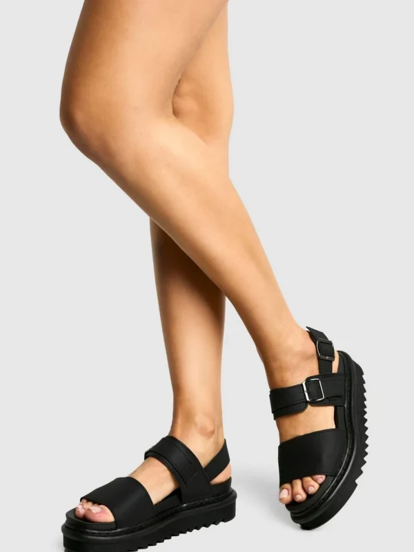 BOOHOO Chunky Buckle Detail Flatform Sandals