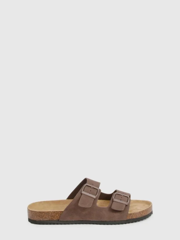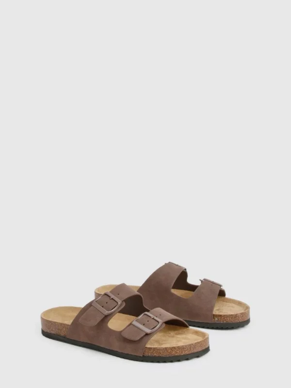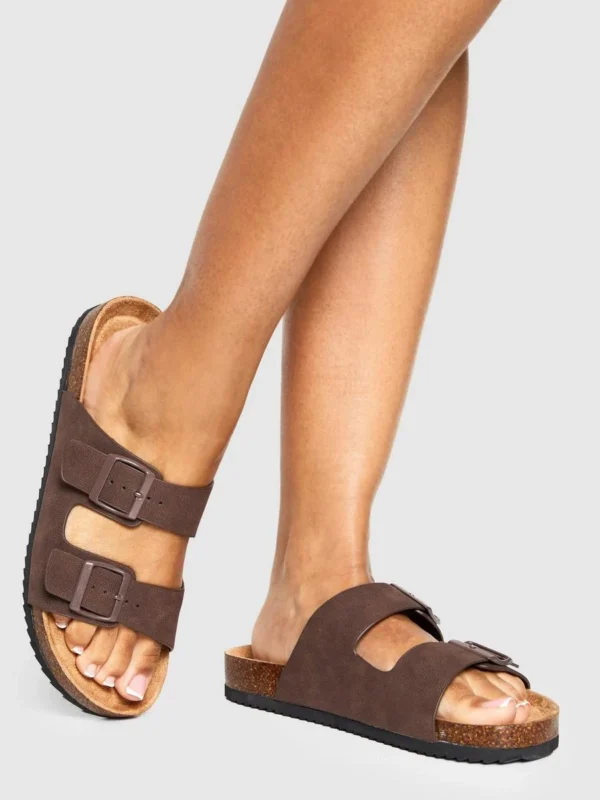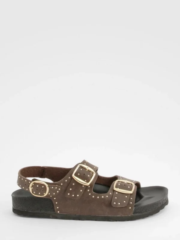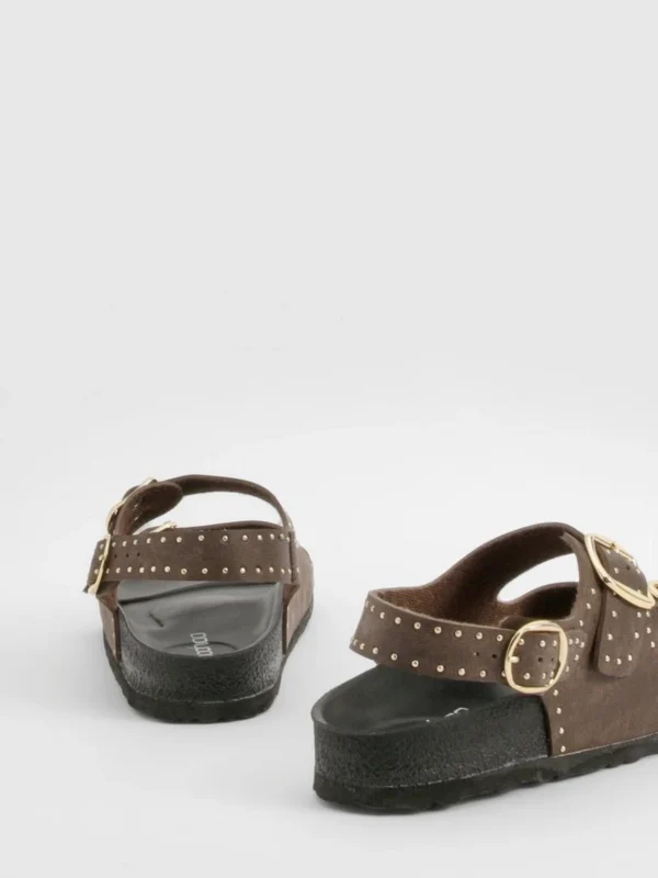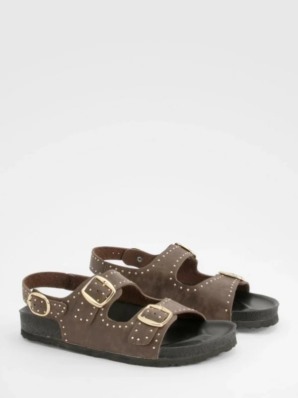 BOOHOO Burnished Pu Studded Double Strap Dad Sandals