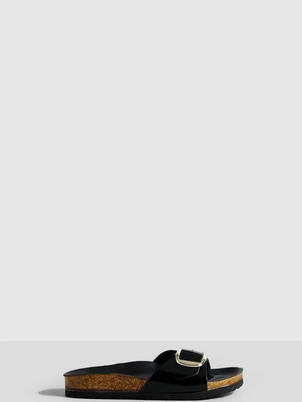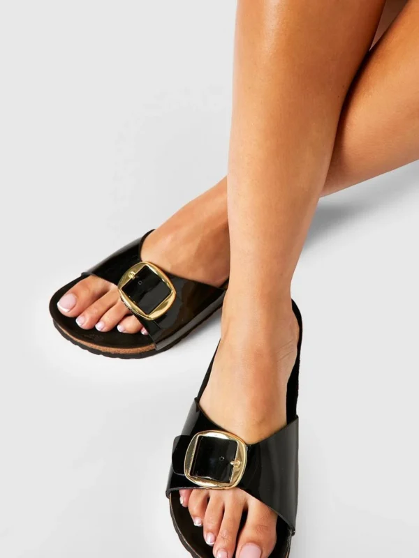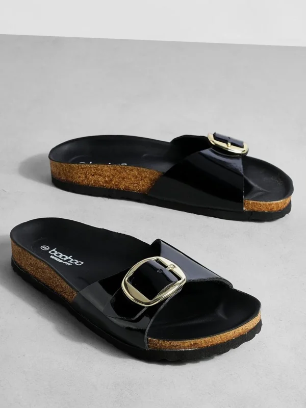 BOOHOO Wide Fit Oversized Buckle Patent Footbed Sliders