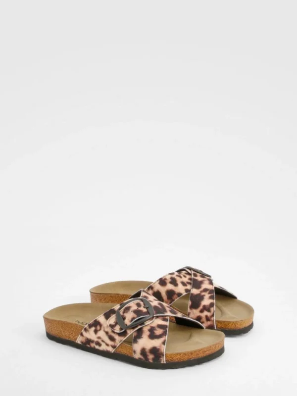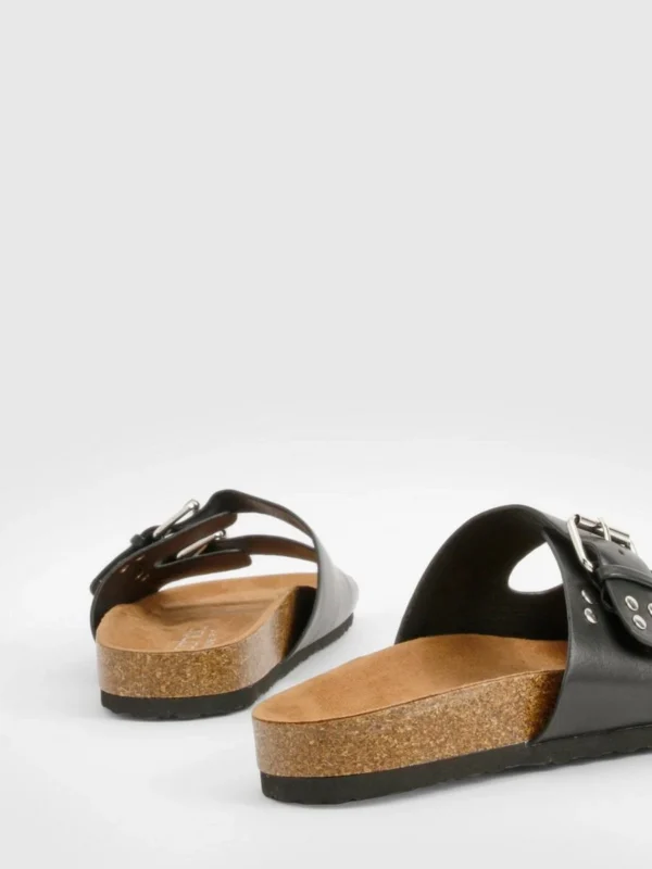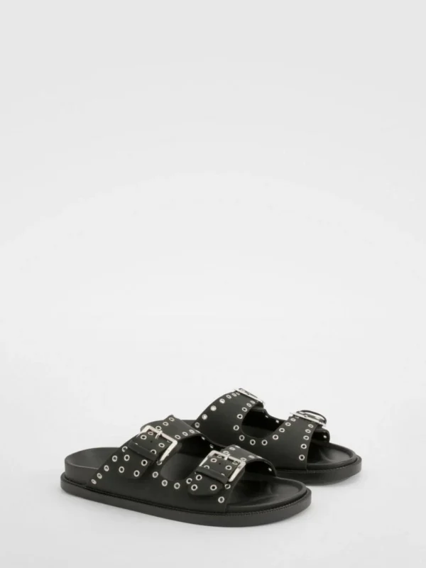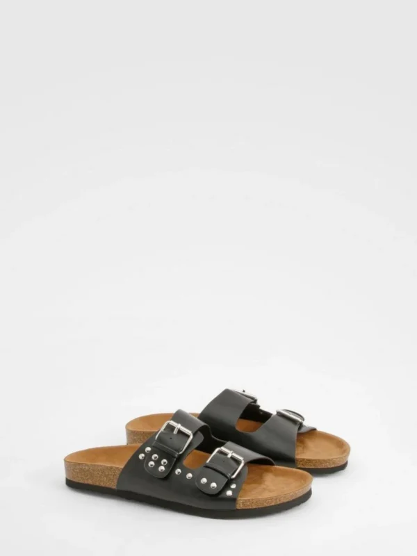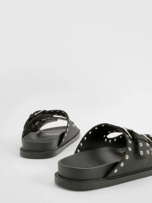 BOOHOO Wide Fit Stud And Buckle Detail Footbed Sliders