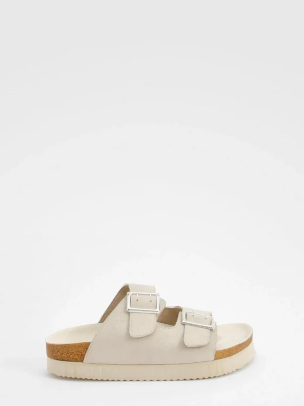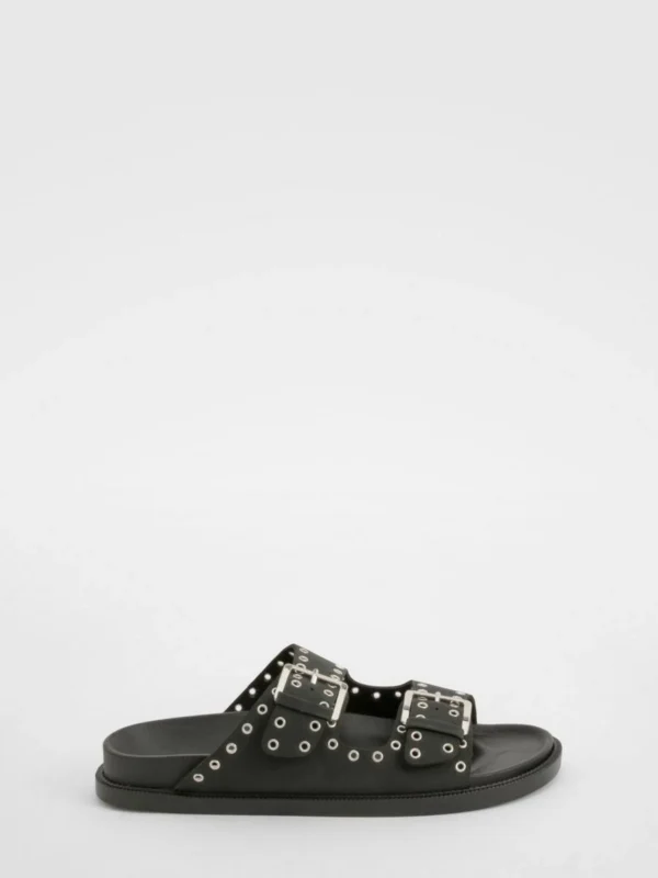 BOOHOO Wide Fit Stud Detail Double Strap Buckle Sliders