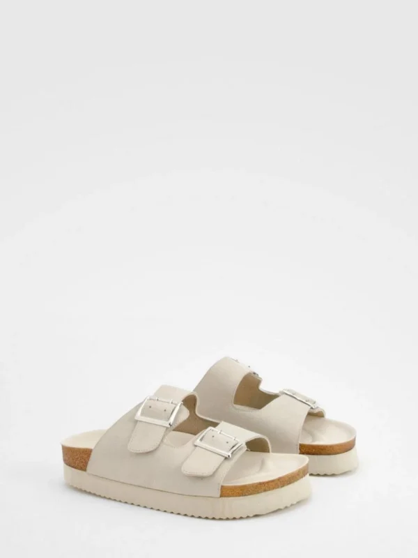 BOOHOO Wide Fit Padded Double Strap Flatforms