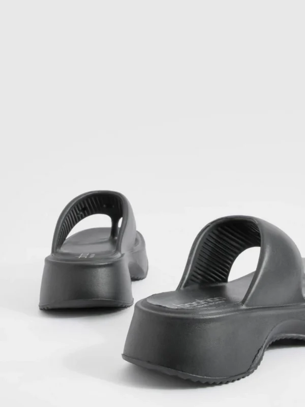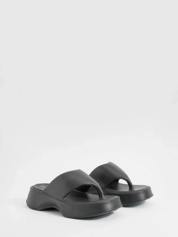 BOOHOO Chunky Platform Square Toe Flip Flops
