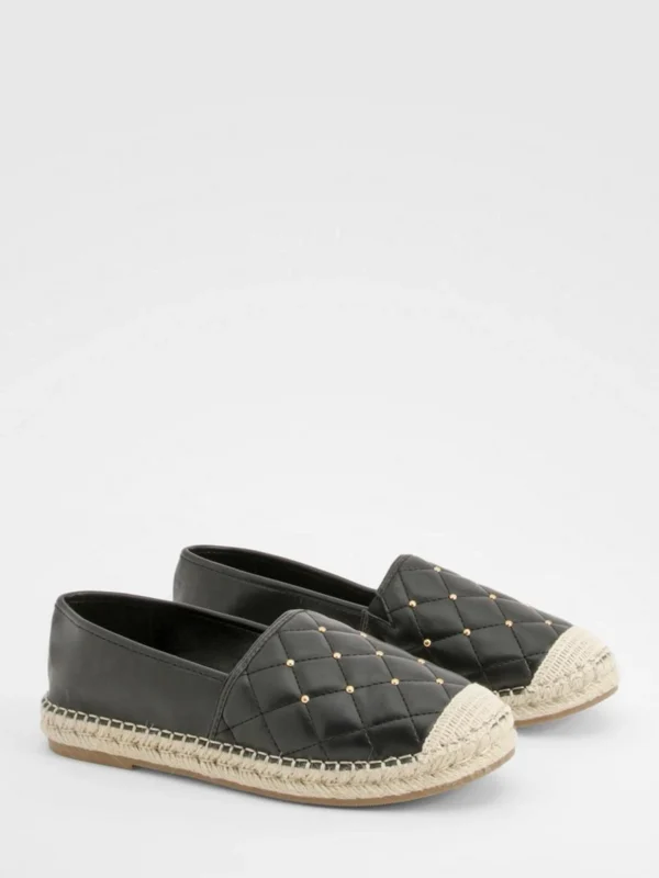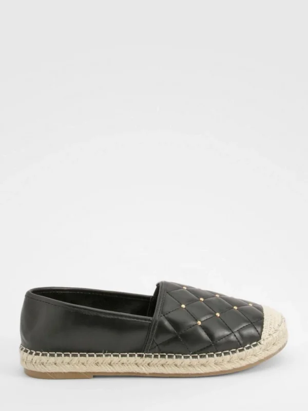 BOOHOO Closed Toe Quilted Stud Detail Espadrilles