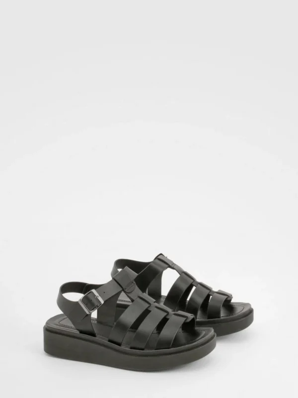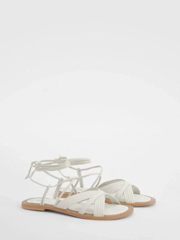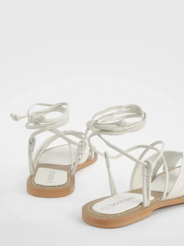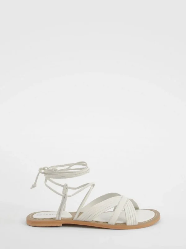 BOOHOO Multi Strap Leather Wrap Up Sandals