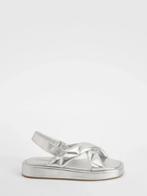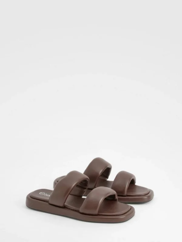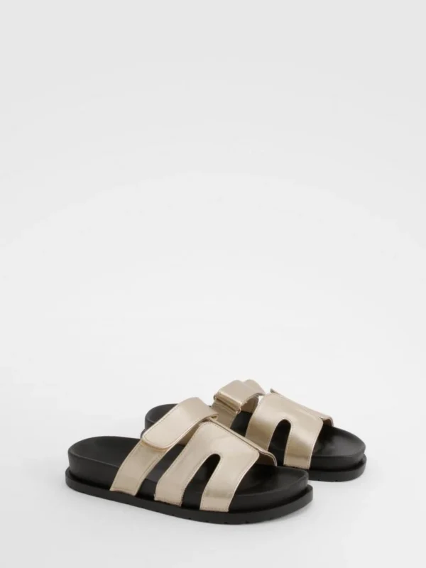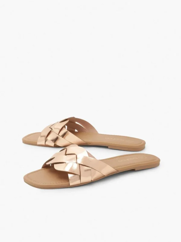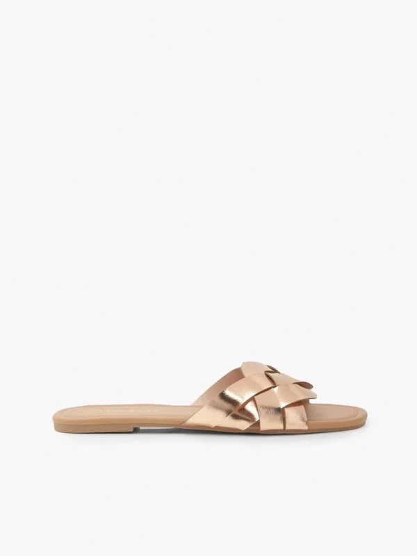 BOOHOO Rose Gold Wide Fit Woven Strap Sliders