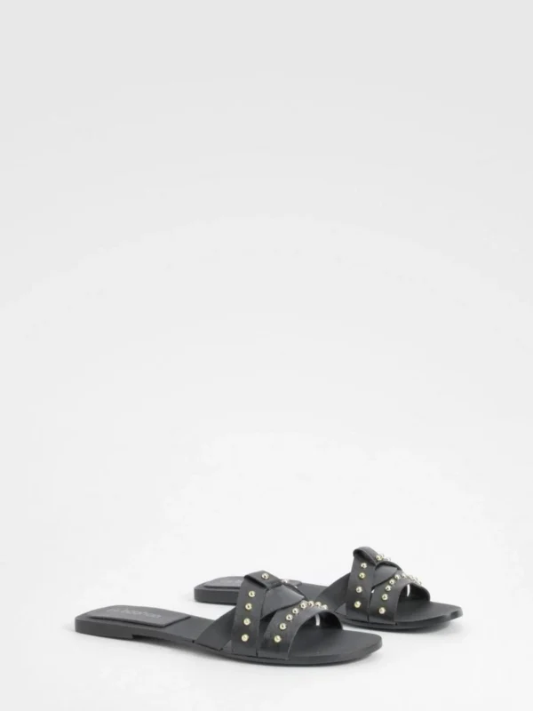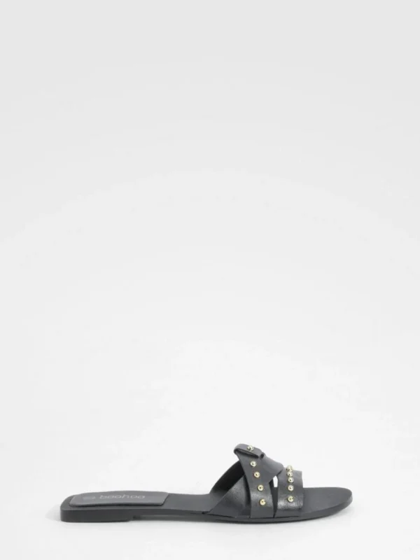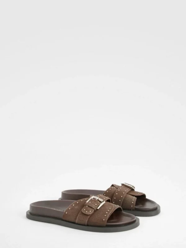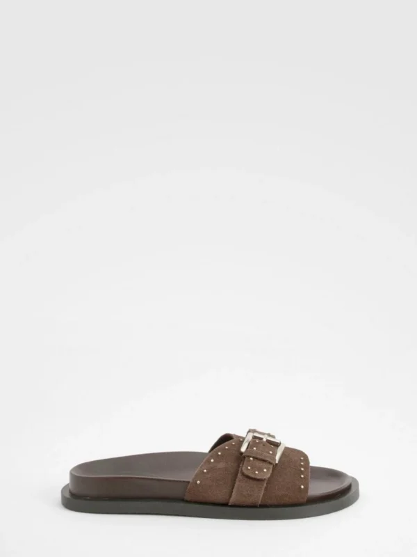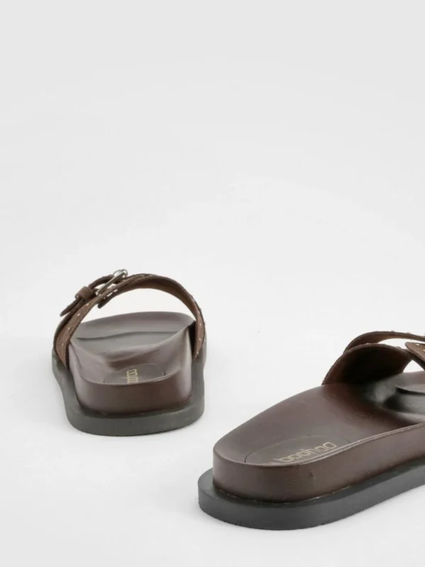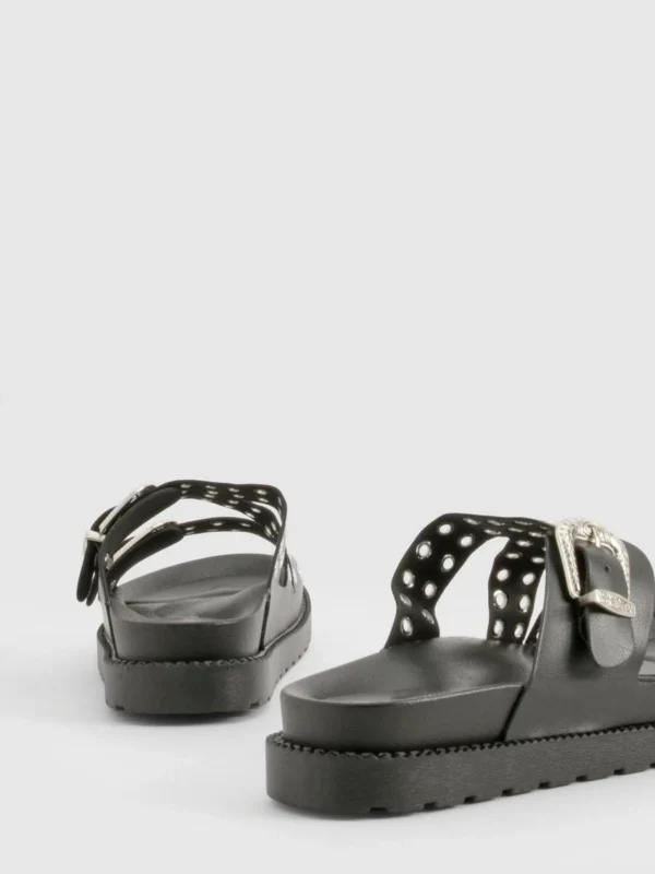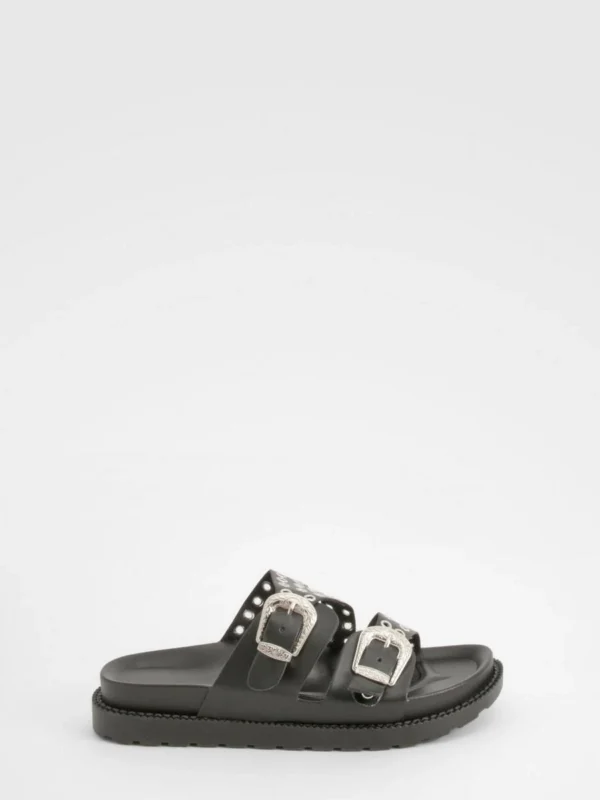 BOOHOO Western Buckle Eyelet Chunky Sliders