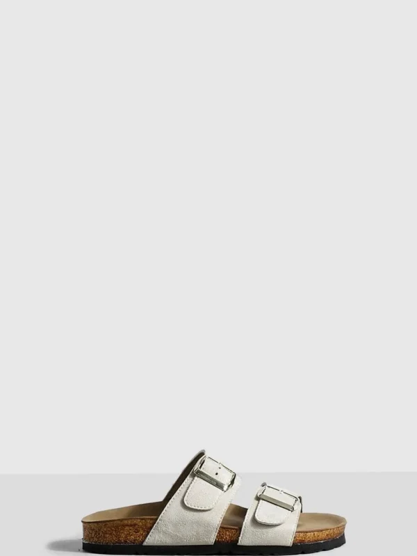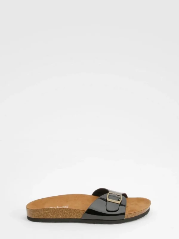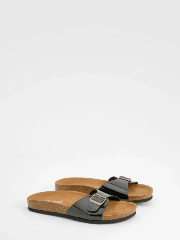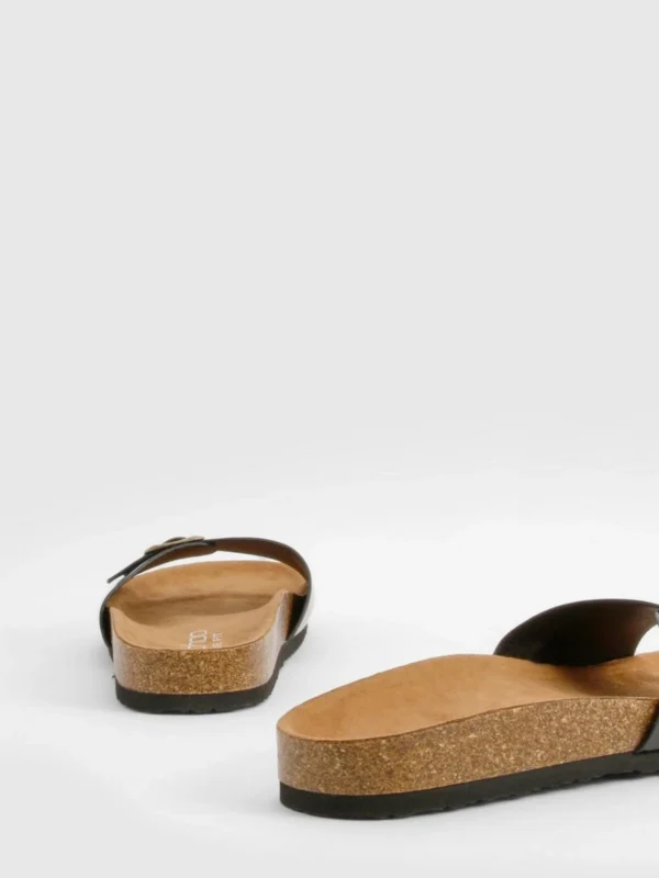BOOHOO Wide Fit Buckle Strap Footbed Sliders