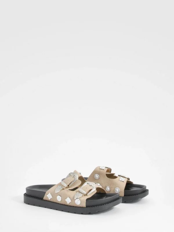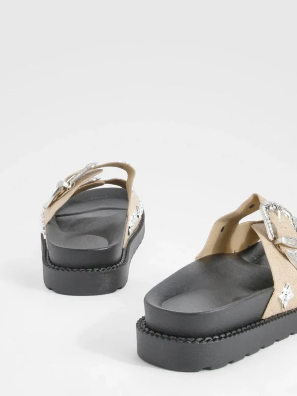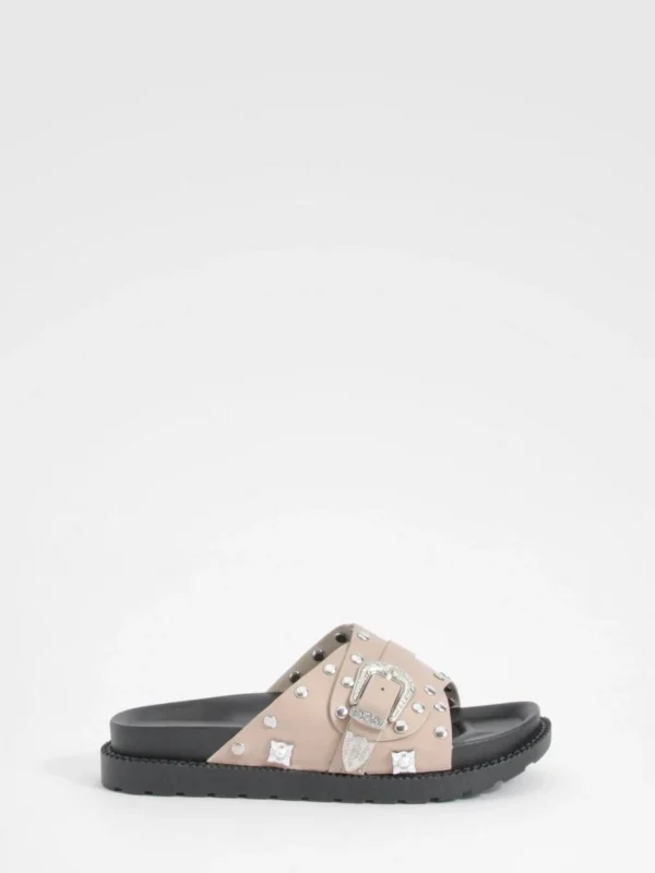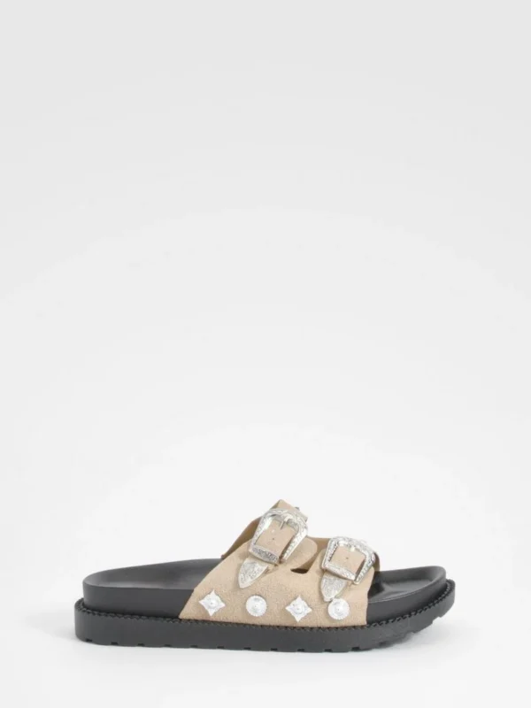 BOOHOO Western Detail Buckle Footbed Buckle Sliders
