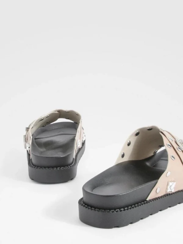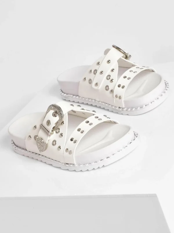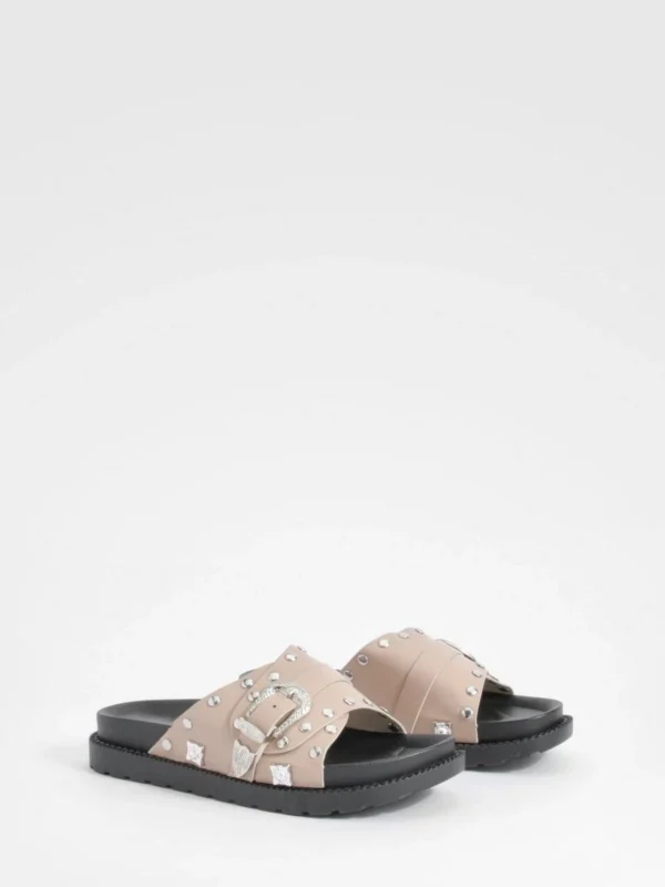 BOOHOO Western Detail Buckle Footbed Sliders