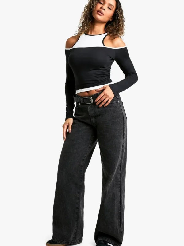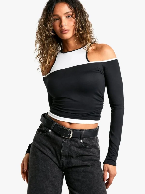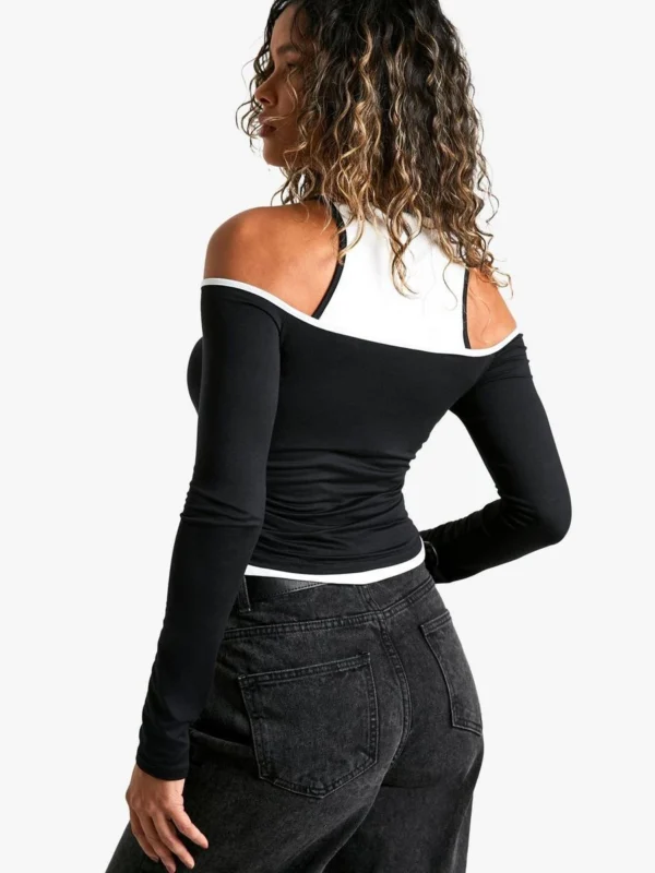 BOOHOO 2 Layer Contrast Binding Long Sleeve Top