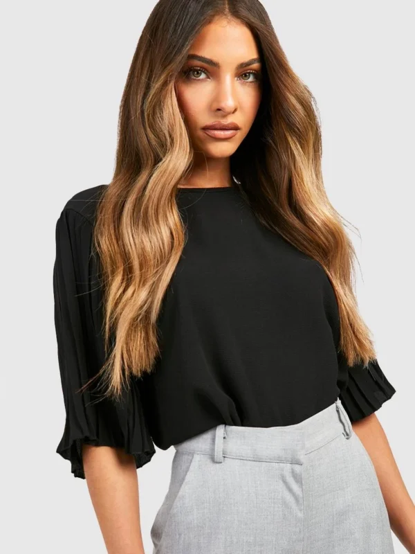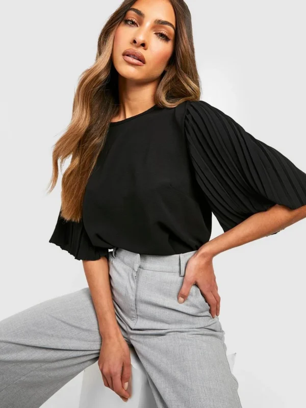 BOOHOO Black Pleat Sleeve Woven Blouse