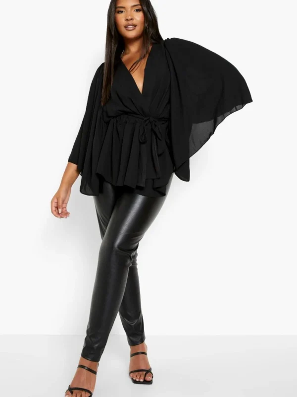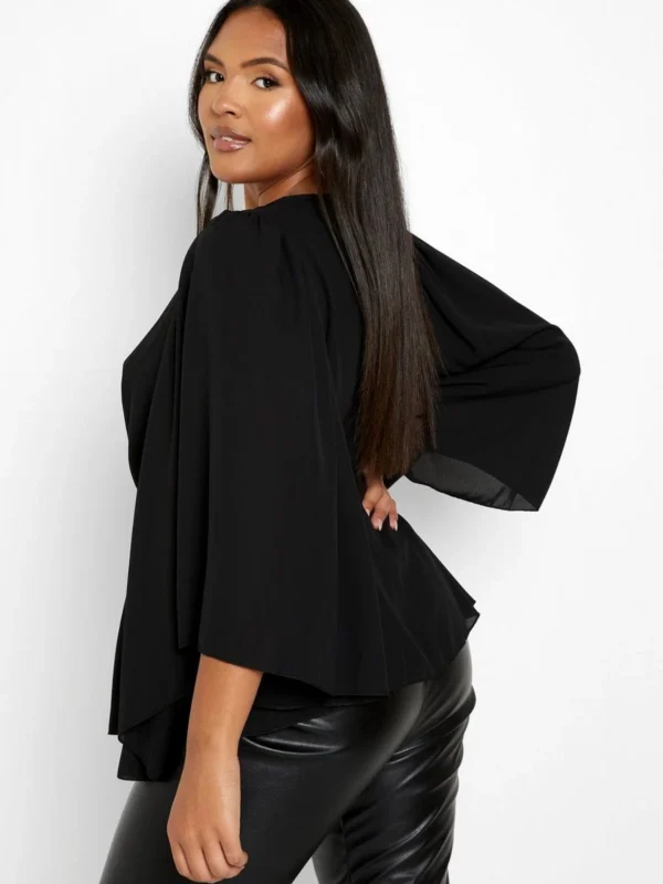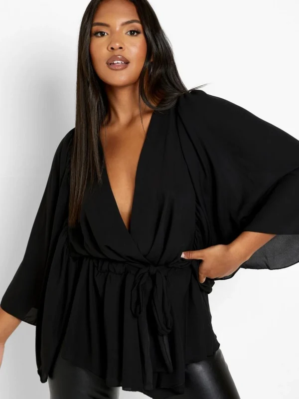 BOOHOO Black Plus Angel Sleeve Wrap Peplum Blouse