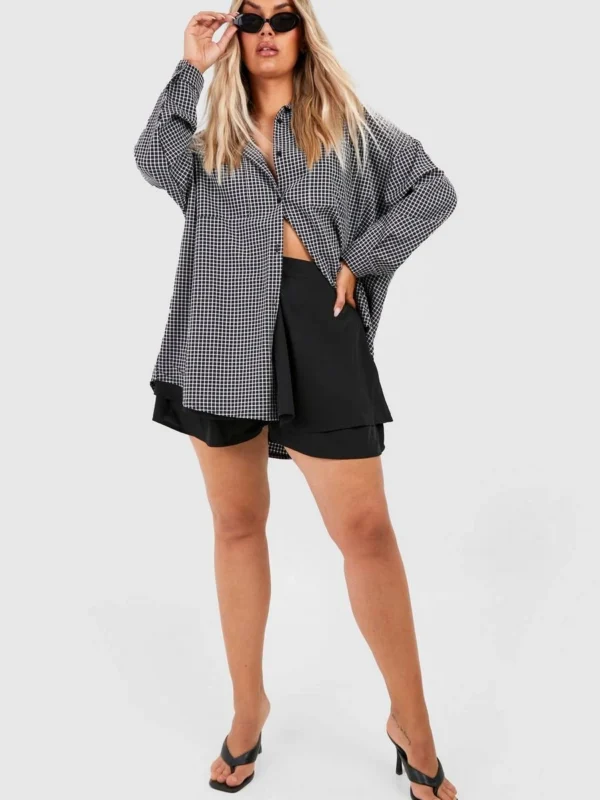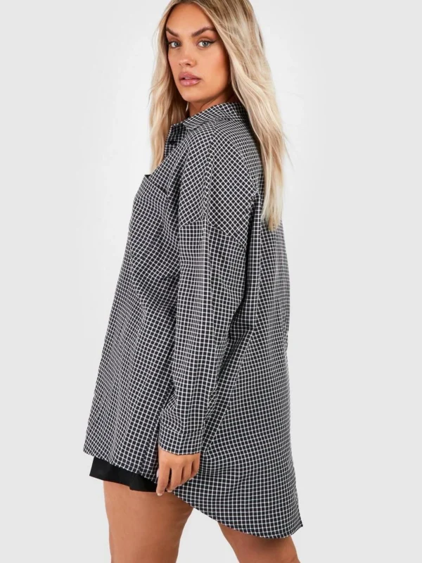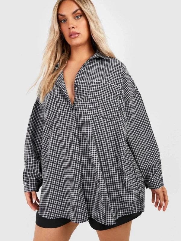 BOOHOO Black Plus Gingham Check Oversized Shirt
