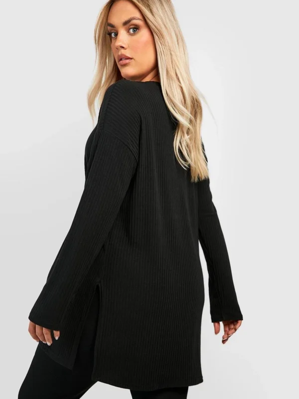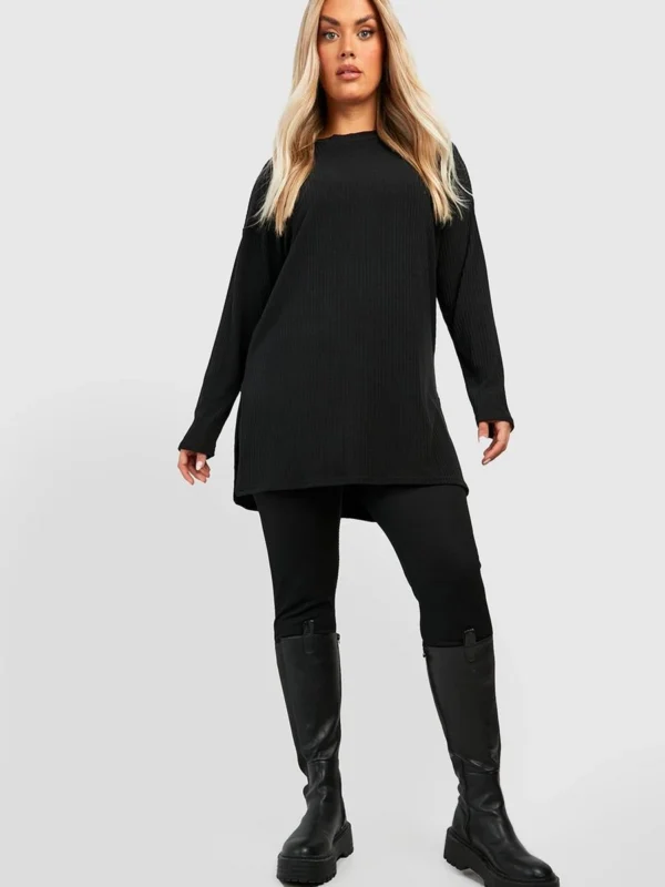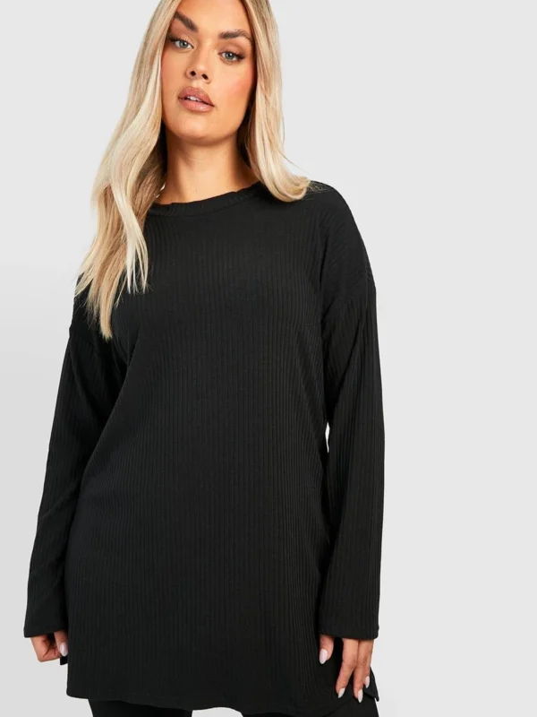 BOOHOO Black Plus Soft Rib Long Sleeve Tunic Top