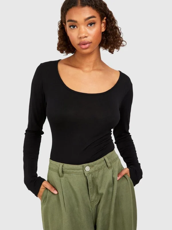 BOOHOO Black Tall Long Sleeve Basic Bodysuit