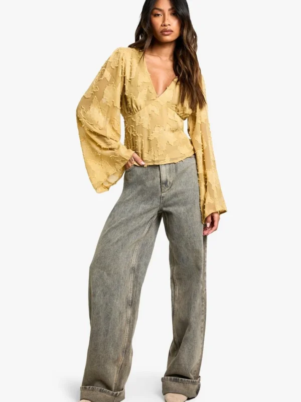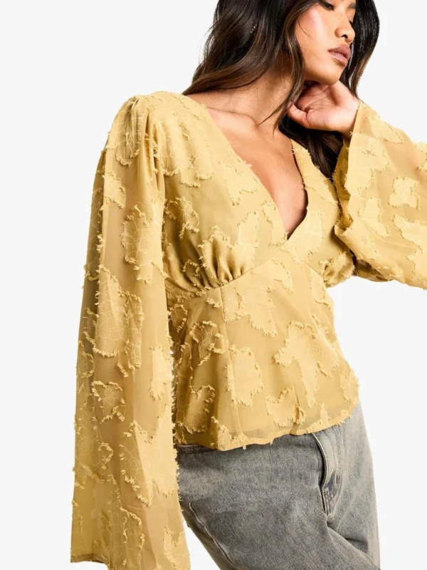 BOOHOO Burnout Floral Angel Sleeve Blouse