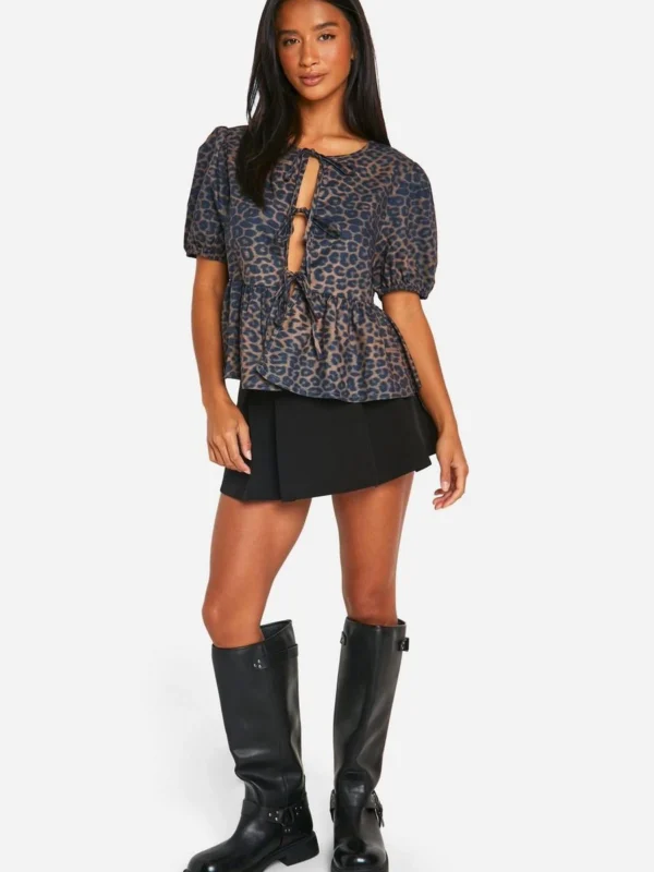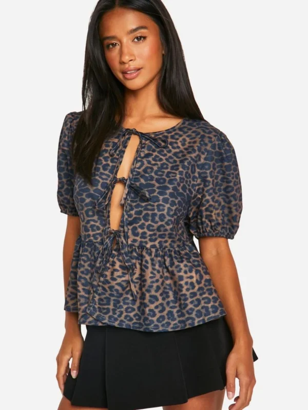 BOOHOO Petite Leopard Tie Front Blouse