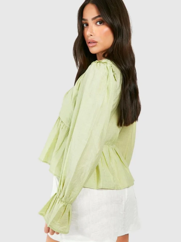 BOOHOO Petite Volume Sleeve Ruched Top