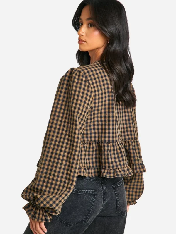 BOOHOO Petite Gingham Ruffle Detail Tie Front Top