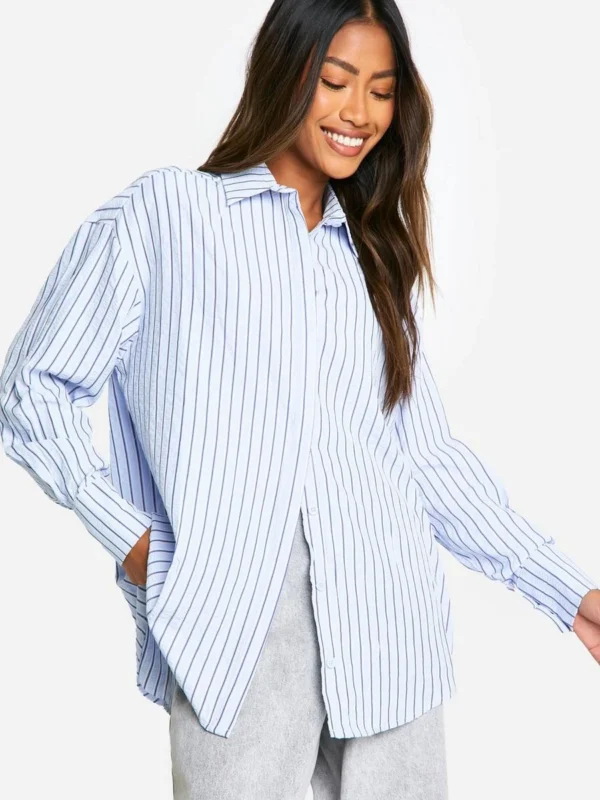 BOOHOO Oversized Textured Stripe Shirt