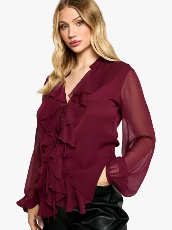 BOOHOO Maternity Tie Front Longline Frill Detail Blouse