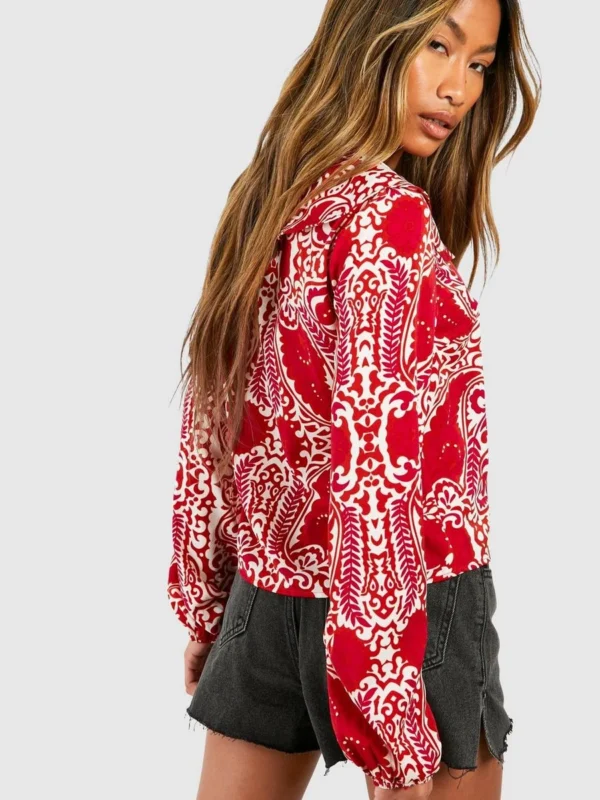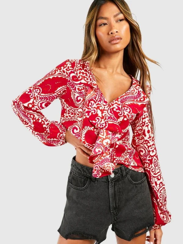 BOOHOO Paisley Ruffle Blouse