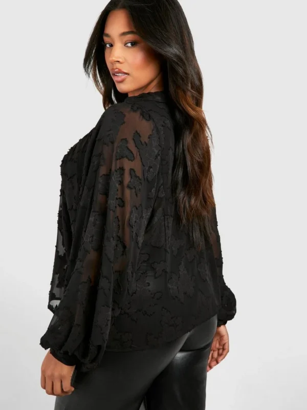 BOOHOO Plus Burnout Mesh Tie Detail Blouse