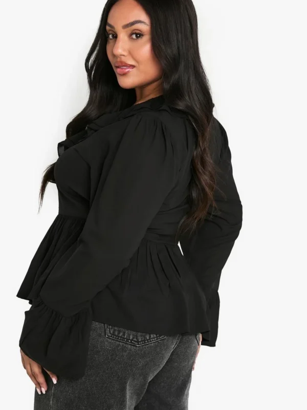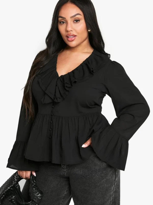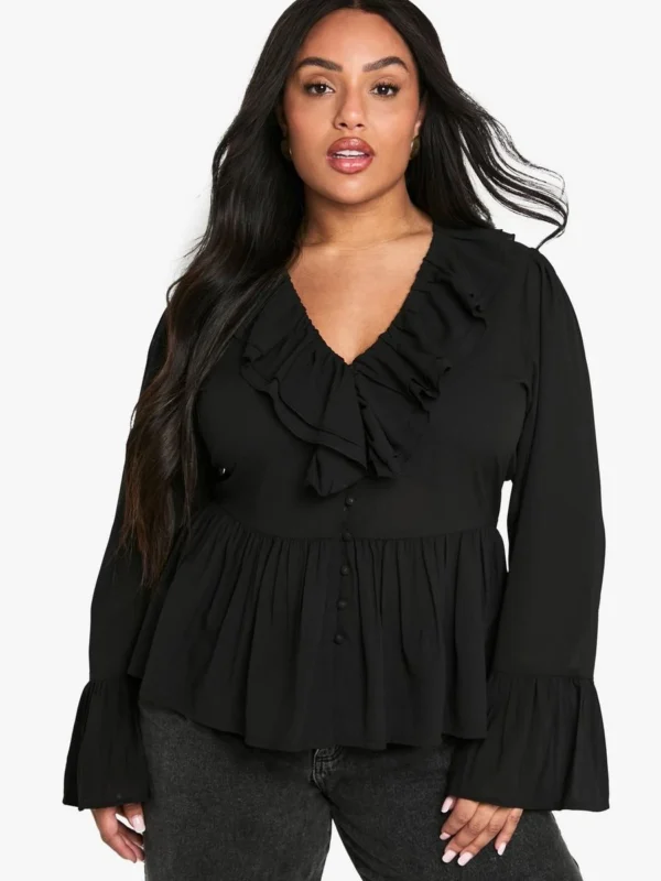 BOOHOO Plus Chiffon Ruffle Blouse