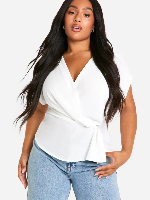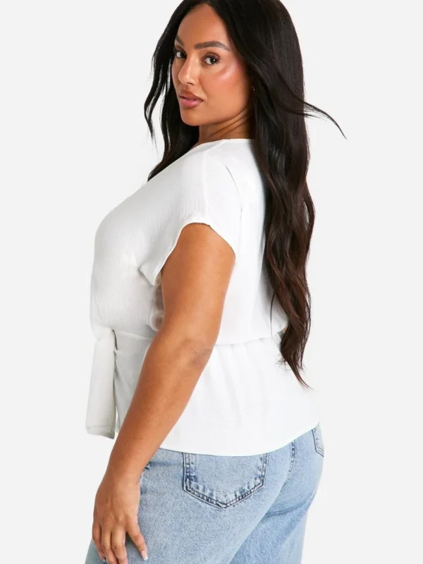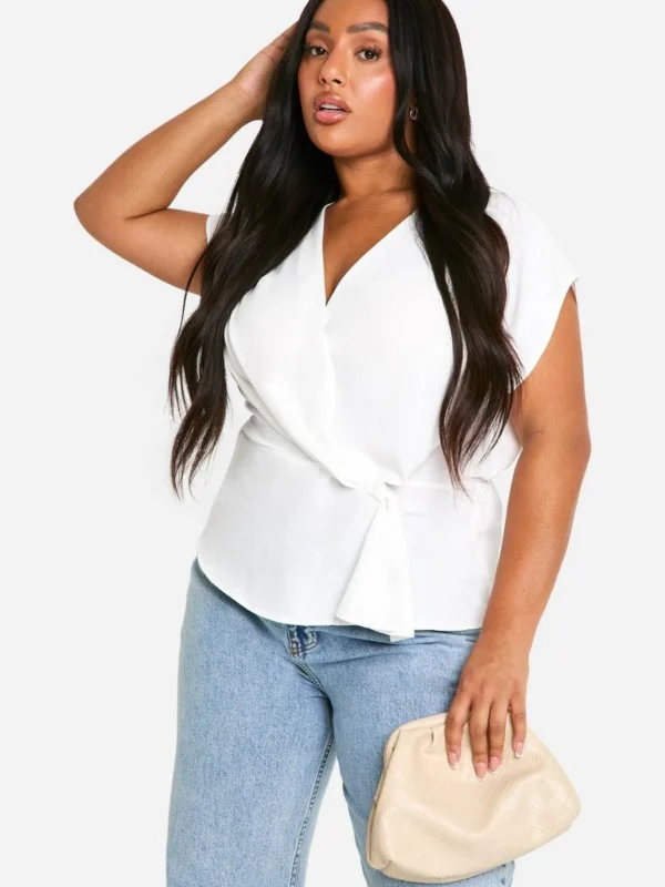BOOHOO Plus Hammered Wrap Knot Front Blouse