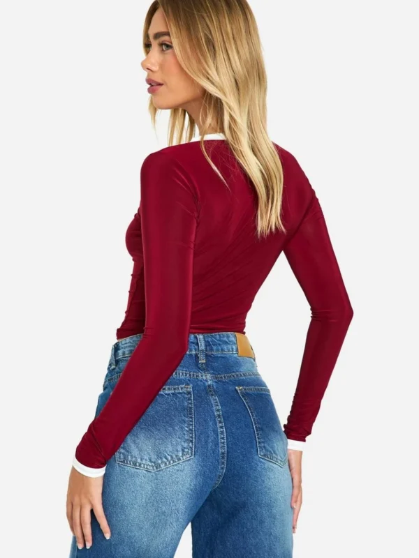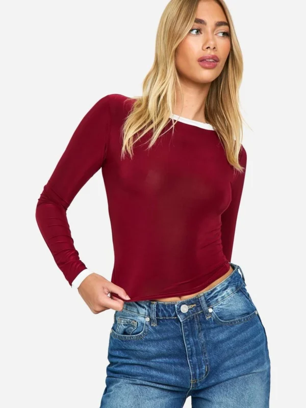 BOOHOO Slinky Contrast Binding Long Sleeve Top