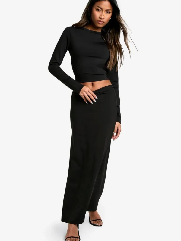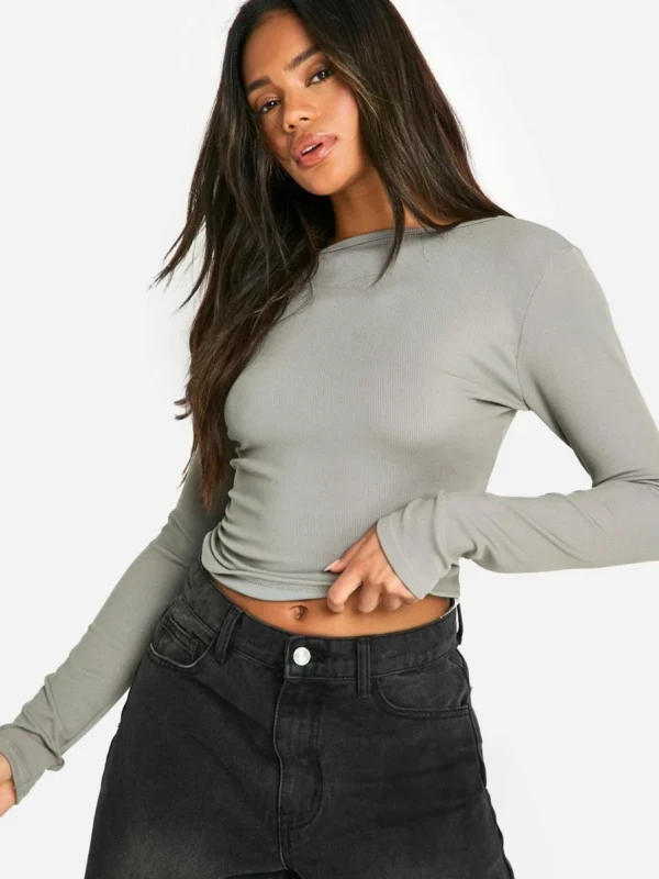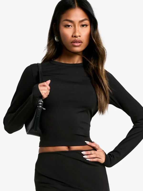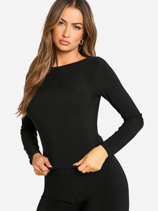 BOOHOO Sculpting Slinky Crew Neck Long Sleeve Top