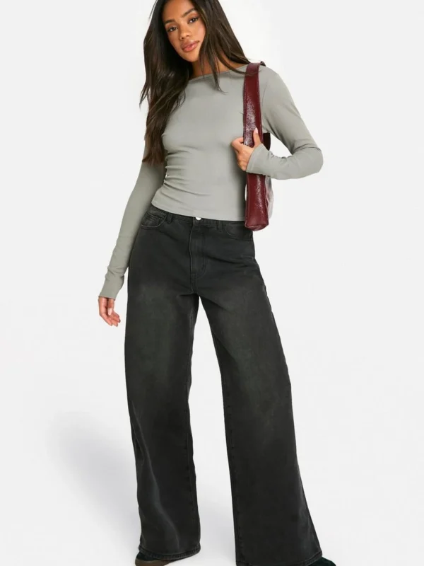 BOOHOO Slinky Boat Neck Long Sleeve Top