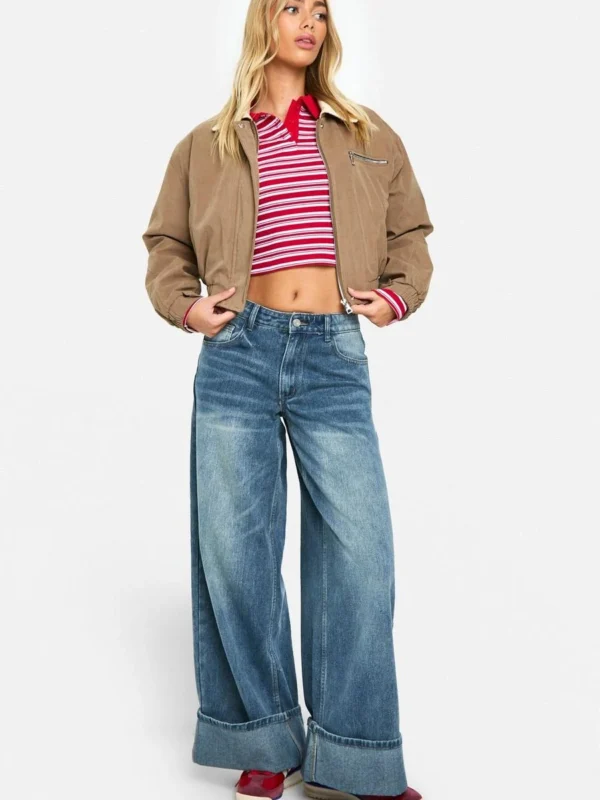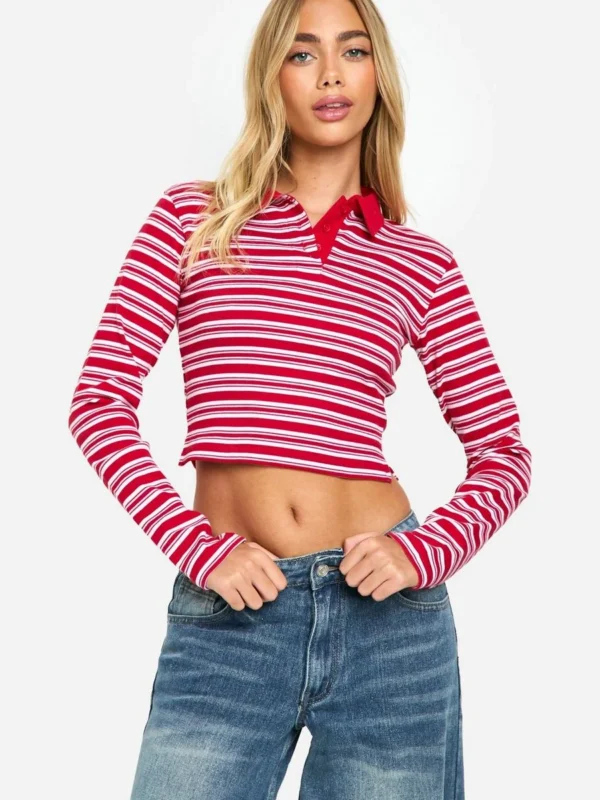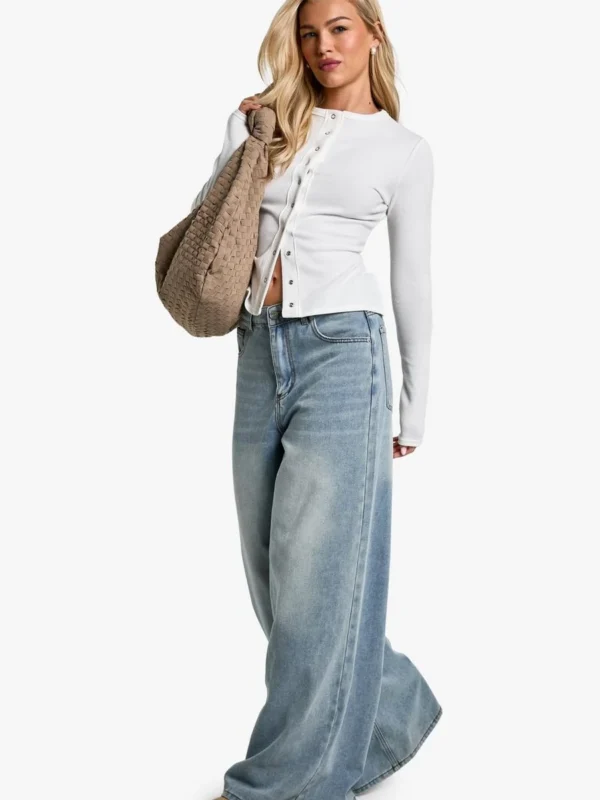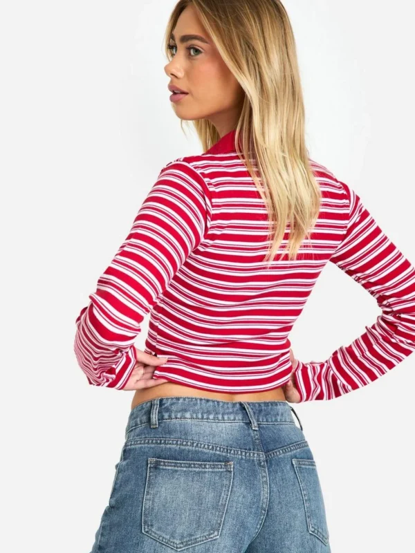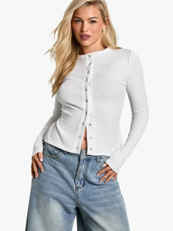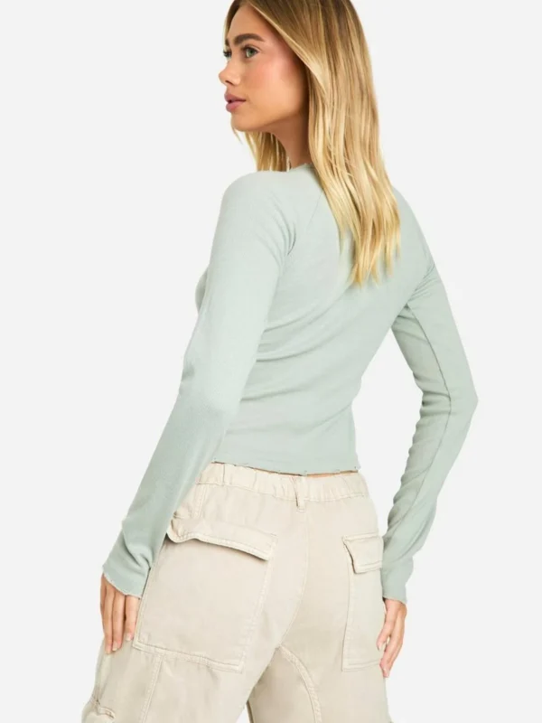 BOOHOO Rib Distressed Hem Long Sleeve Top